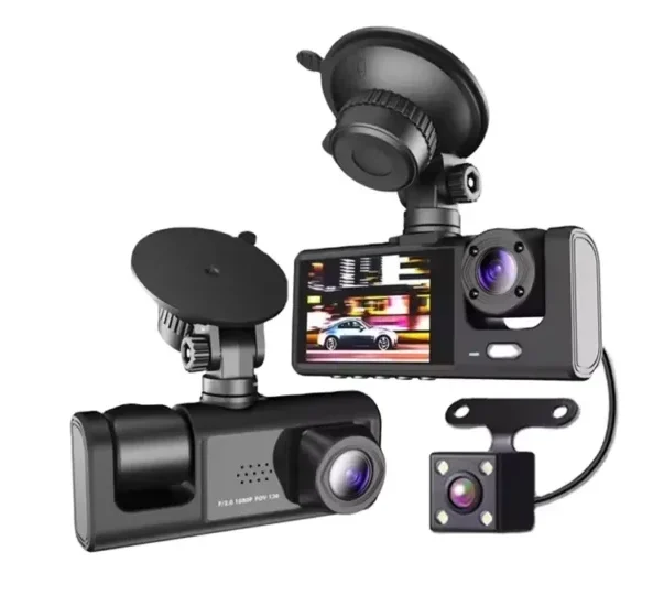 3 Lens HD 1080P Car Dash Camera, designed to capture every angle of your drive. This advanced car black box DVR records from the front road view, interior cabin, and rear camera simultaneously, giving you full protection while driving.