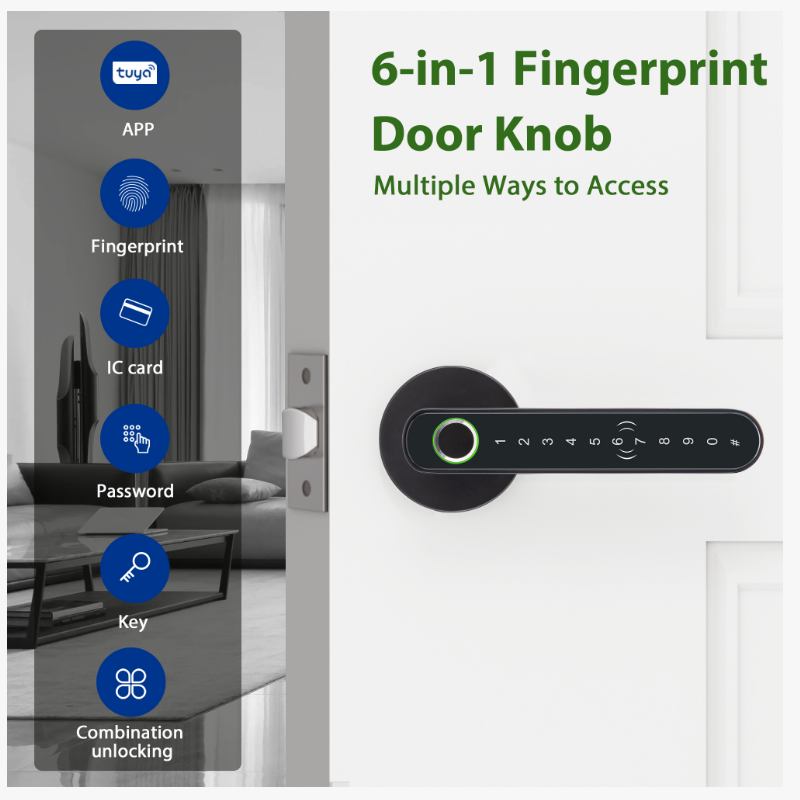 Unlock your door using Fingerprint, TTLock App, Tuya App, Password, RFID Card, or Mechanical Key.