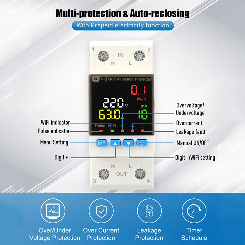 🔥 Smart, safe, and efficient — take full control of your power system with this advanced WiFi voltage protector & energy meter.
