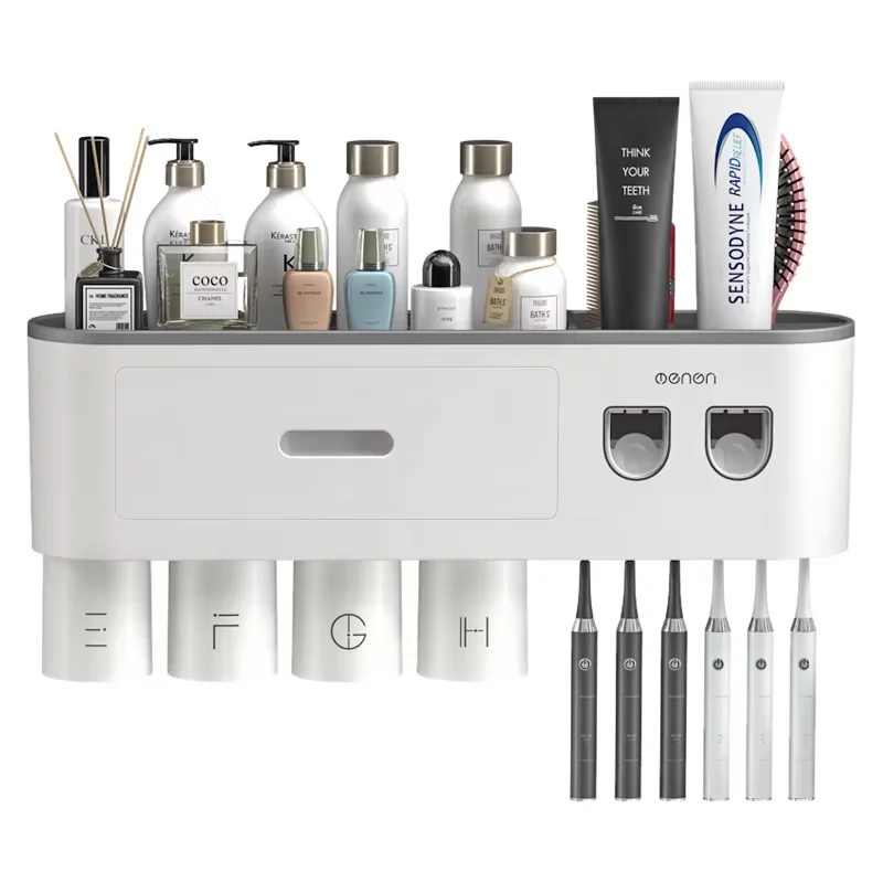 Keep your bathroom clean, organized, and clutter-free with this multi-functional wall-mounted toothbrush holder. Designed for modern homes, it combines a toothbrush holder, cup storage, and automatic toothpaste dispenser in one sleek unitβno drilling required.
