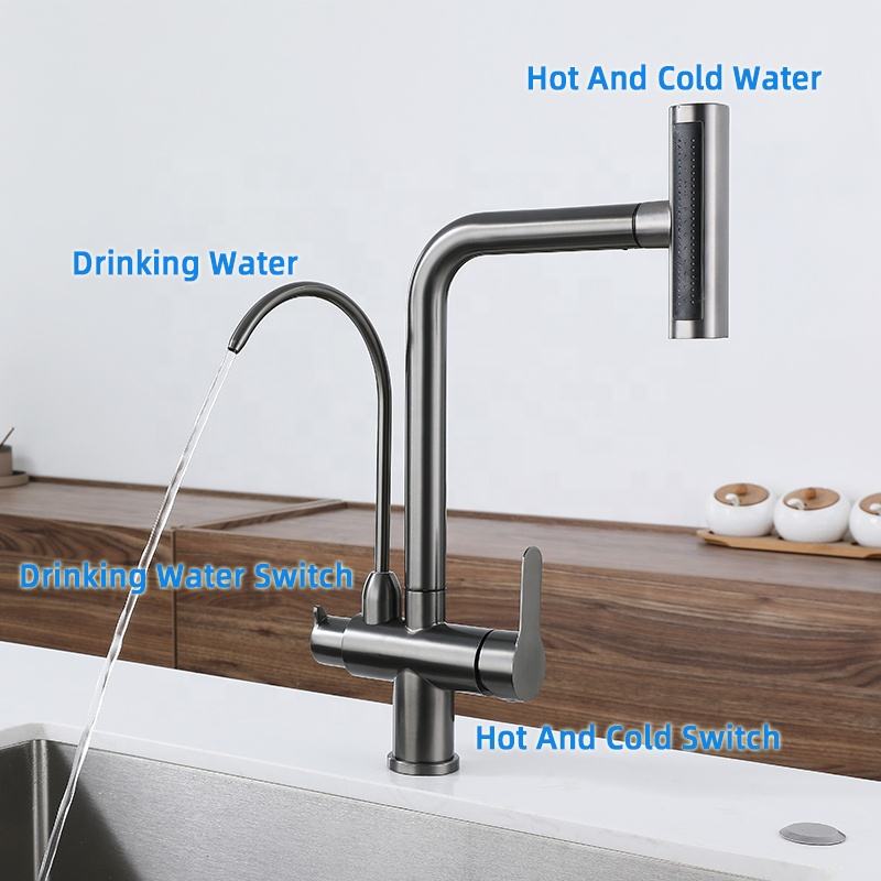🚰 360° Rotating Waterfall Kitchen Faucet – Dual Handle Pull-Out Sprayer with Drinking Water Tap